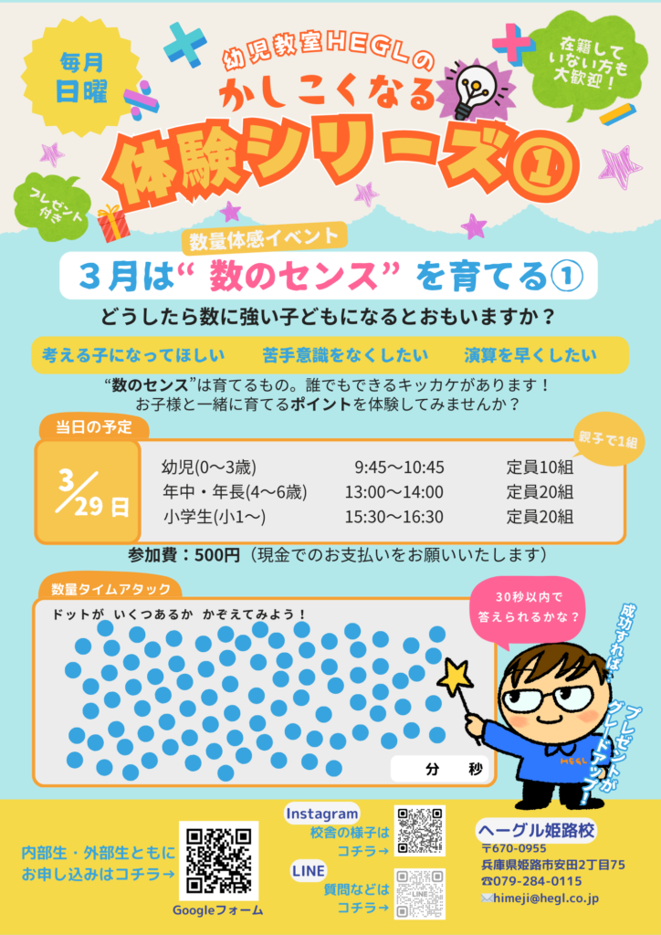 3月の体験イベントでは、お子さまと一緒に「数を体感する取り組み」をおこないます。