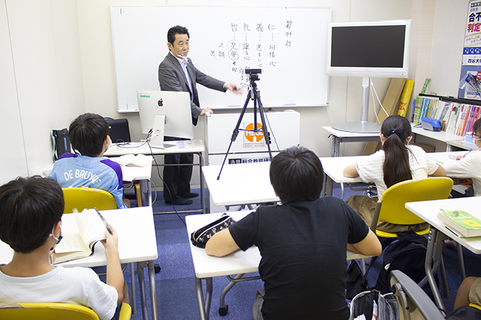 距離を求める問題などを講師が図などでイメージをしやすく見せながら解説をしていました。ノートに図を書いて考えた生徒、図を頭の中でイメージし、式を書いて整理しながら答えを求める生徒がいましたが、中には何も書かずに図や数をイメージで捉え、答えている生徒もいました。