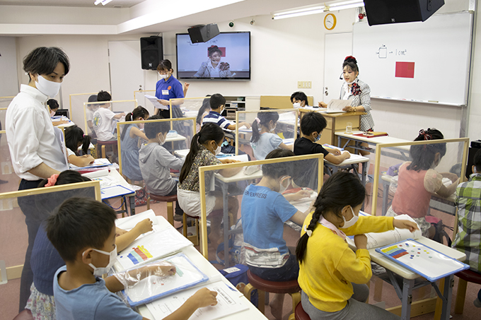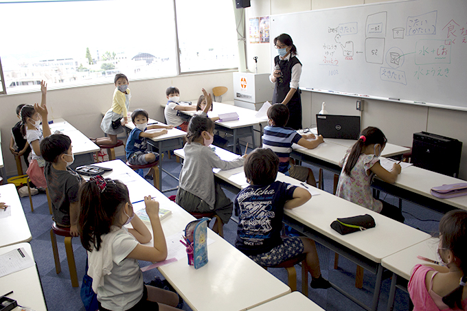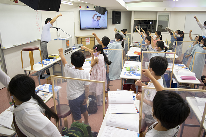 国語では、どんな文章であっても少しでも内容が読み取れるようにといった事を目的に全員で理事長に合わせて大きな声で、内容が深くそして難しい課題図書を音読しました。Pre-MEPⅡでは大人でも理解が難しい古典文学を読み、一つ一つ解説を加えながら紐解き、その中から人として生きていくために大切な事を学んでいきます。