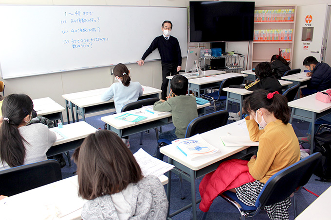 比の問題に取り組みました。悩みながらも解答を導き出しており、生徒同士で切磋琢磨する様子も見られました。良き仲間であり良きライバルがいることは、生徒たちにとっても励みとなっているようです。