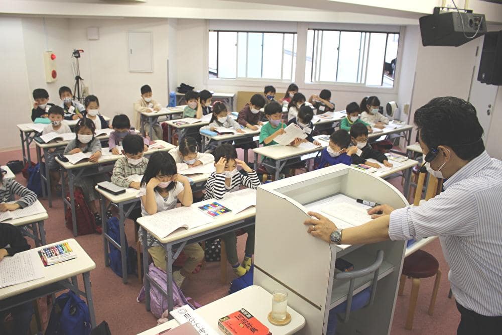 国語では、どんな文章であっても内容を少しでも読み取れる力を養う事を目的に、内容が深くそして難しい課題図書を、理事長と一緒に全員で大きな声で音読しました。その後、一つ一つ解説を加え、それぞれに感じた事を書いたり発表したりしました。今まで触れたことのないような文章であっても、それぞれに感じたことを発表し、少しでも理解を深めようと必死に取り組んでいました。また、漢字やことわざの勉強も行いましたが、少し上の学年の内容でも楽しくすんなり頭に入っているようでした。