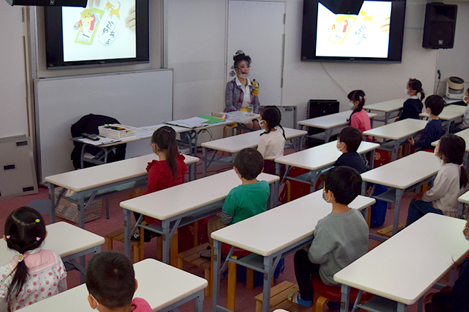 1月のオリエンテーションでは保護者の方が同じ空間で見守る中プログラムを行いましたが、今回からは子どもたちだけの入室です。良い緊張感の中、大きな声であいさつし、スタートすることが出来ました。